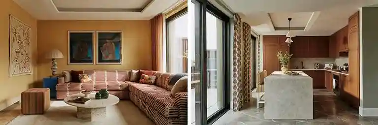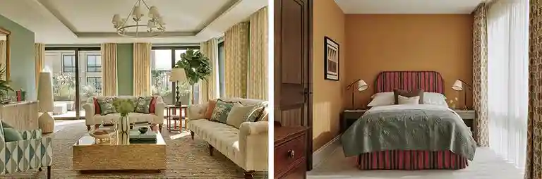 ChelseaBarracks首次与伦敦知名设计工作室StudioAtkinson合作,创造出一个既舒适又奢华的居住空间。灵感源自ChelseaBarracks的历史与周围的自然环境,这个顶层公寓巧妙地融合了室内与室外的设计。每个房间都以现代优雅为背景,搭配鲜艳的花卉装饰,营造出和谐而愉悦的氛围。公寓内的英式工艺来自本地供应商,向该地区丰富的文化遗产致敬,而古董如中国风高脚柜则为空间增添了永恒的优雅,展现出开发团队对传统的尊重与承诺。