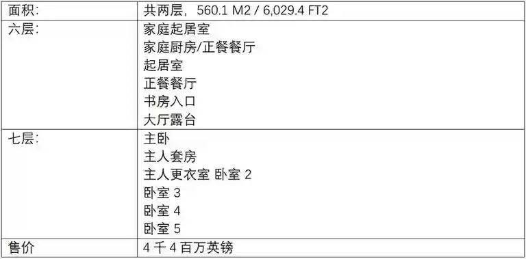 顶层公寓概览: