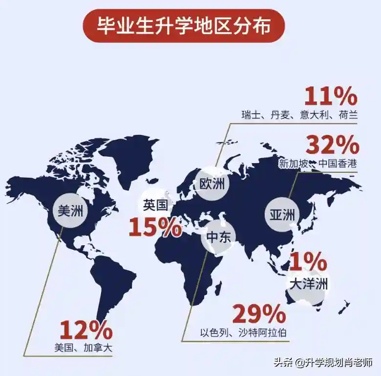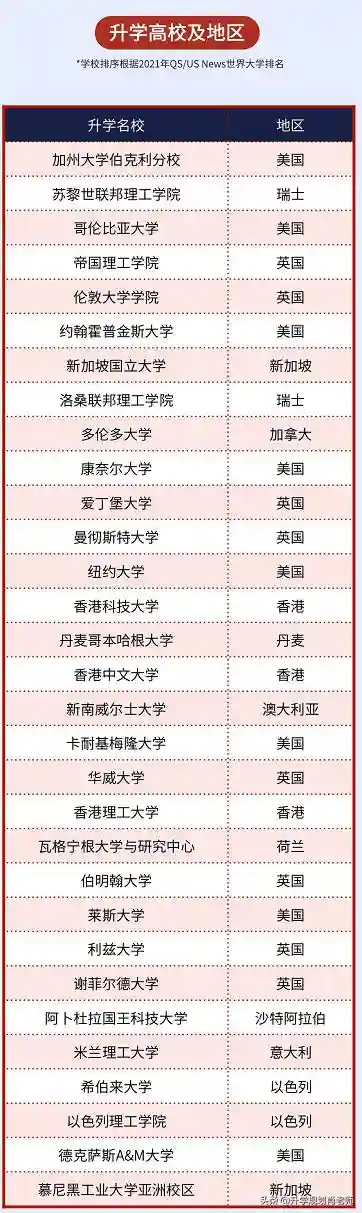 2.51%的毕业生攻读QS前30大学,97%毕业生进入QS前100大学,升学质量高。