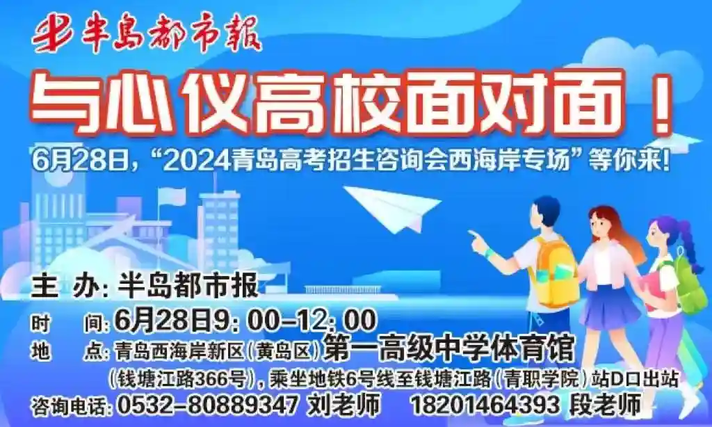 高考考得好,志愿填报更重要。为了更好地帮助考生了解各高校在鲁招生政策及志愿填报相关事宜,6月28日,将在青岛西海岸新区第一高级中学举办“2024青岛高考招生咨询会”,邀请省内外各大高校招生负责人现场答疑,指导考生科学填报志愿,合理选择高校和专业,为广大考生和家长搭建与招生院校面对面交流的平台。