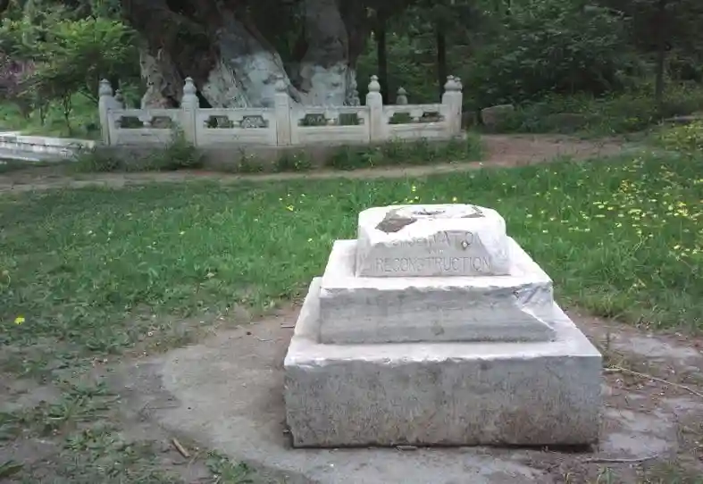 刻有“conservationandreconstruction”字样的残石,现存于燕园。何晋摄