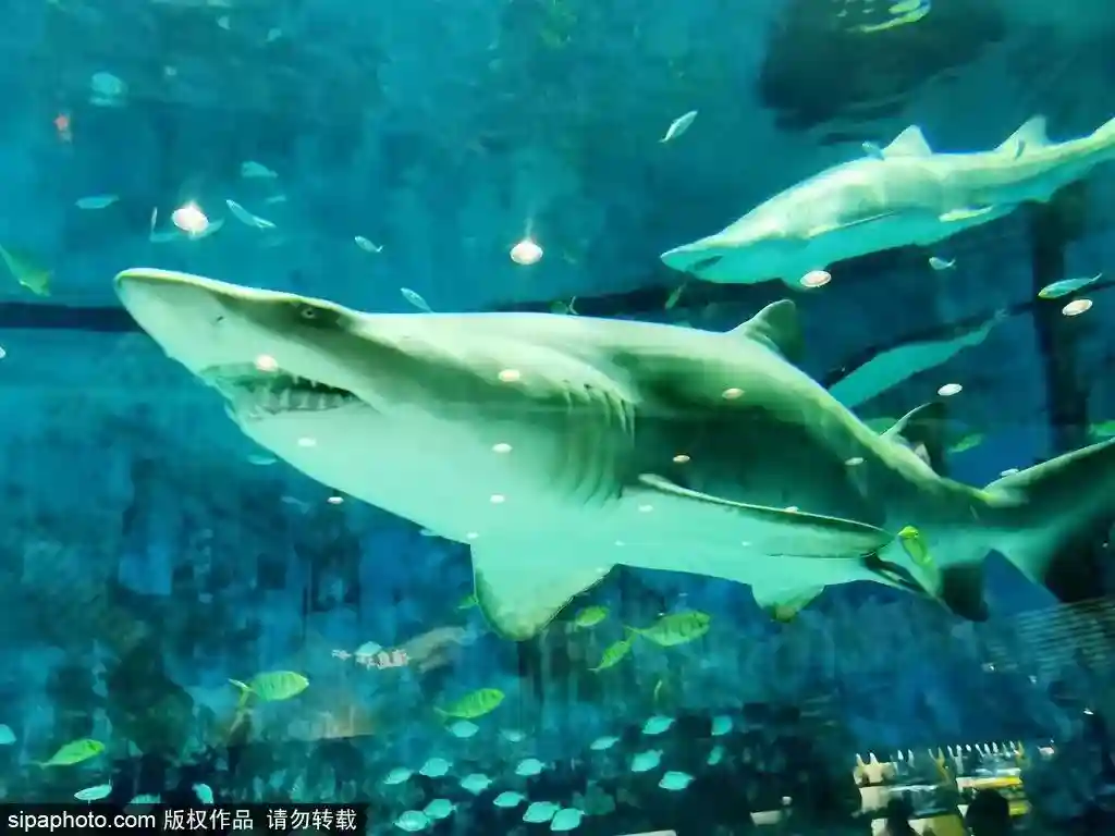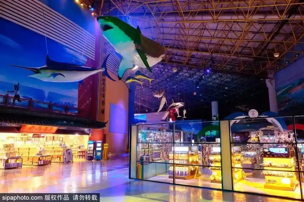 这里的海底世界,凶猛的沙虎鲨和潜行的魟鱼你追我赶,飞翔的鹰嘴鳐像一艘海底UFO在鲨鱼小镇衰败的城市与萧条的街道造景之中穿梭。这里更有全国首家“全画幅水下3D立体造景”。