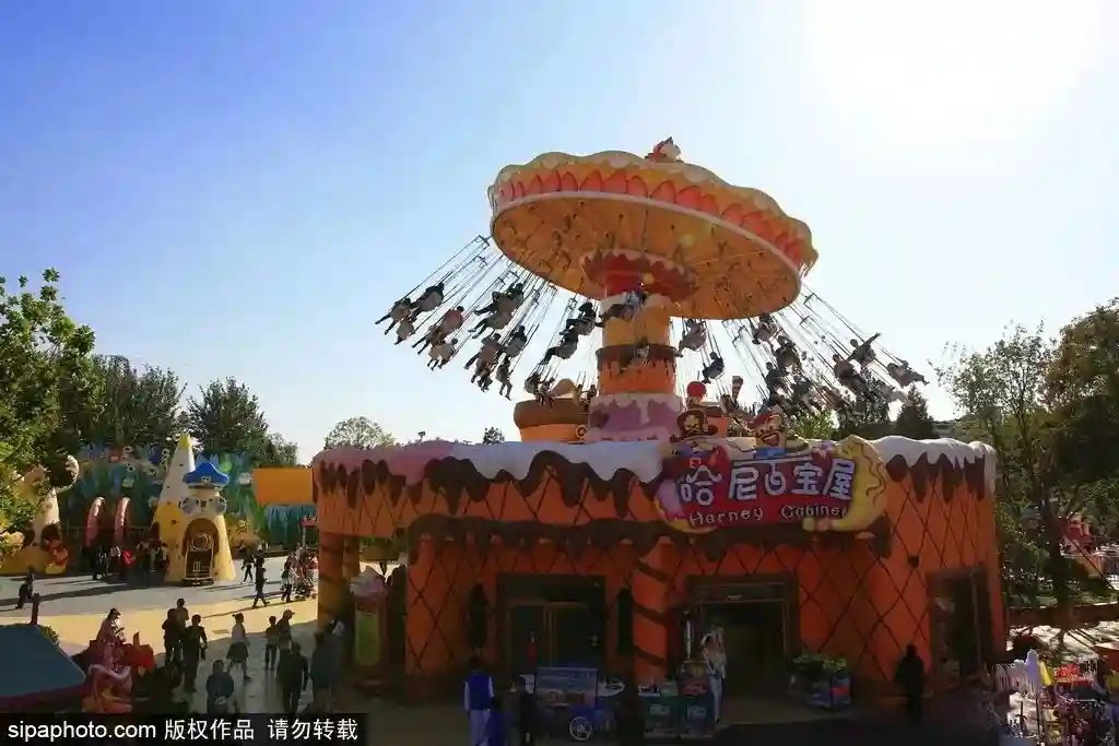 姜饼旋转木马:这是国内屈指可数的甜品主题双层木马,装饰以姜饼曲奇、甜甜圈等甜品形象为主。设备最大运行速度7.4km/h,速度适中,不会让人感觉眩晕,适合各个年龄段的游客体验。傍晚时分,姜饼旋转木马会亮起可爱的彩灯,非常适合游客拍照。