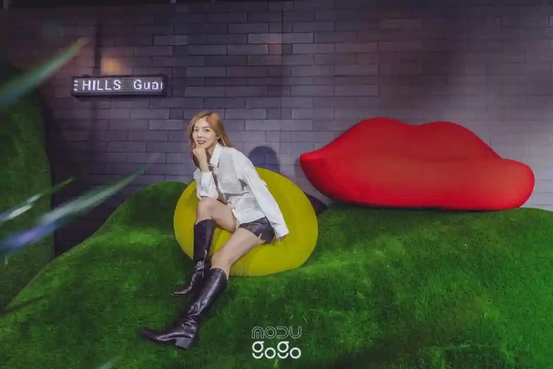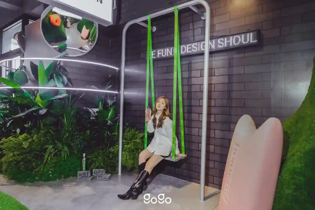 带着手中的宝藏奶茶坐上周围的秋千座椅
