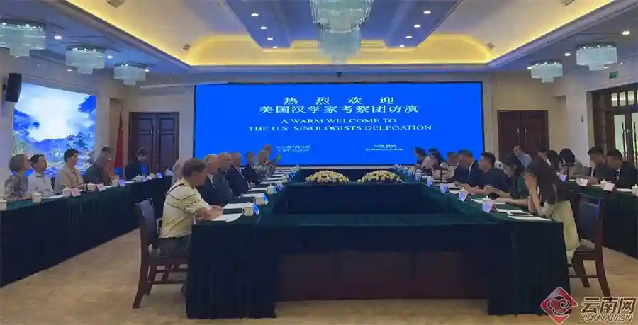 7月26日,考察团与省外办、省社科院、云南大学、云南民族大学、省教育厅等单位就推动深化中美民间交流进行座谈。省外办负责人介绍云南省情和经济社会发展情况,表示滇美“飞虎情缘”深厚、人文交往密切、青少年交往频繁,希望汉学家们积极支持未来五年邀请五万名美国青少年来华交流学习等项目,共同推动滇美、中美民间友好交往。