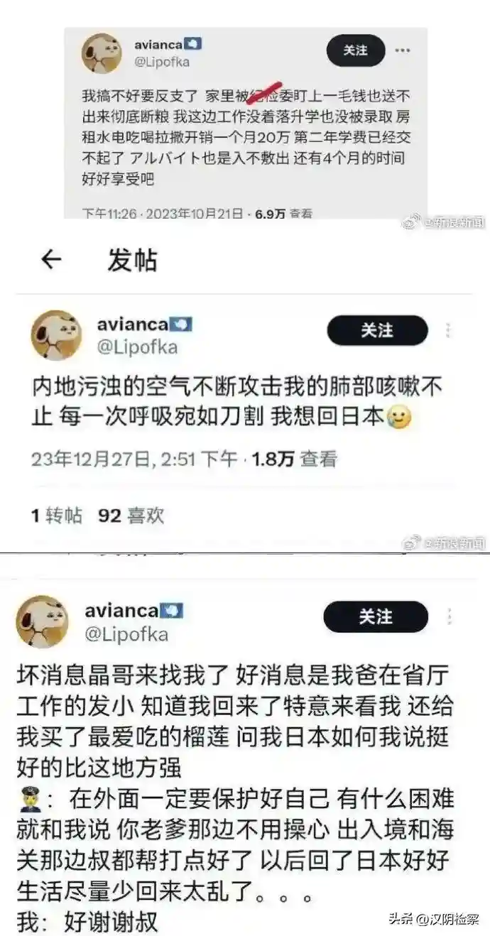 ▲有网友爆料,一赴日中国留学生在社交媒体辱华,现已进入山西省国税局工作。7日晚,官方通报:太原一网民发布大量“辱华”言论,自称受父辈庇护,入职国税系统。经查,史某(男,28岁,无业)多次在网络公开发表“辱华”“仇华”言论。近日又编造散布自己为公职人员身份的网络谣言。经核实,其父亲为某企业普通员工。目前,史某已被依法刑事拘留。