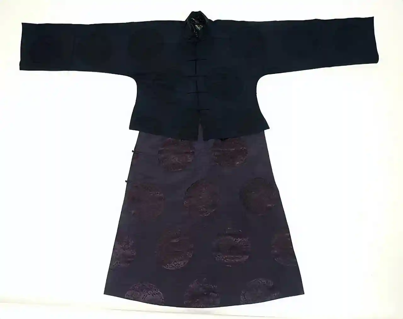 清代男装主要是长袍和马褂,而且他们的袖子会做成马蹄的形状,这种是前代都不曾出现的。长袍的造型基本上也都是偏向简约,立领直身。