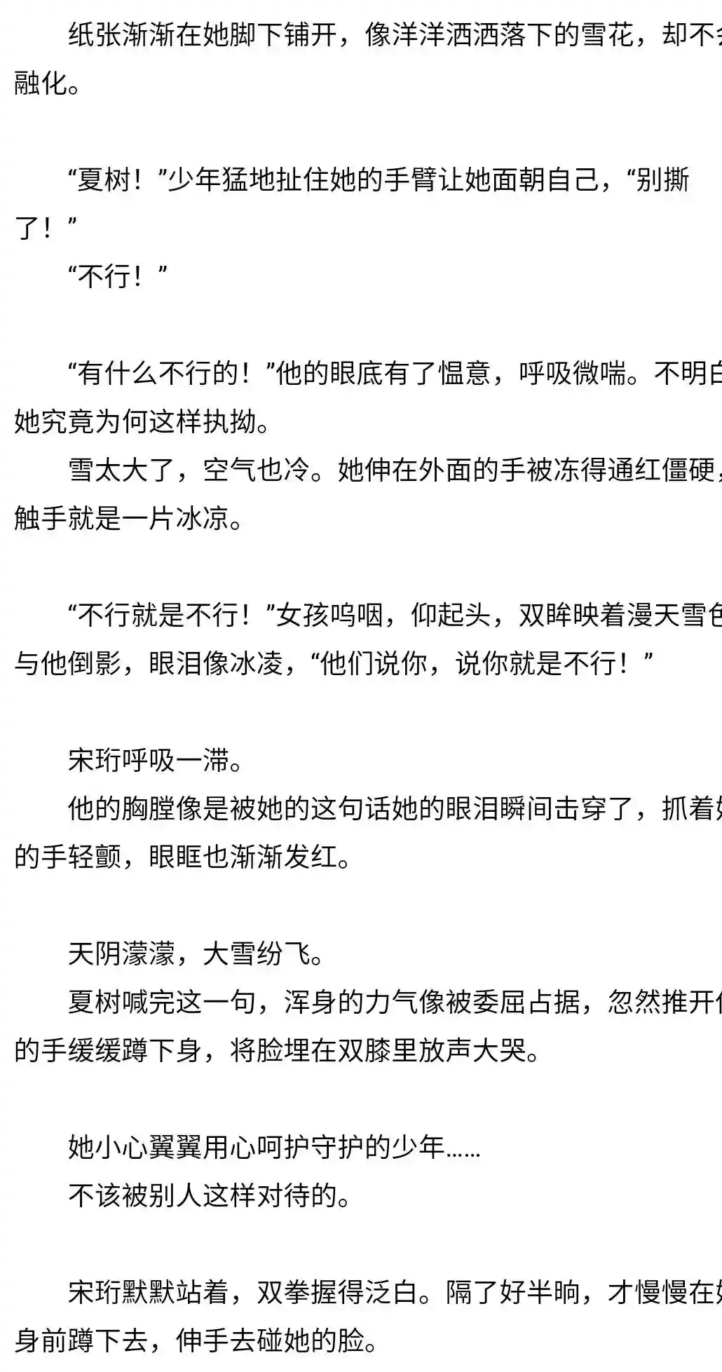 粉丝暗暗地想:估计是要失望了……可是下一秒,他们就看到这位素来清隽自持的男神,微微弯曲着脊背,以一种十分虔诚卑微的姿态抱着自己怀里的女孩,眼底有着难以自控的侵略性和占有欲。声线低沉,“乔西宁,别和我开这样的玩笑。”