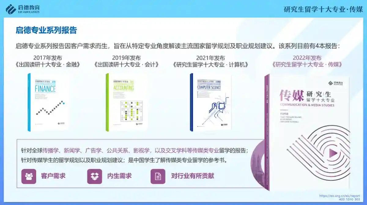 对于中国学生来说,传媒专业的热门留学院校有哪些?申请竞争激烈吗?留学的趋势如何?2022年11月26日,启德教育发布《研究生留学十大专业·传媒》报告,这是继启德教育发布金融、会计、计算机等热门留学专业报告后的又一本专业主题报告,集合了海内外官方数据、启德留学客户服务数据、以及多位传媒硕士留学生分享,重点分析了海内外传媒专业设置的差异,留学的申请要求与录取趋势,就业环境与薪资待遇。