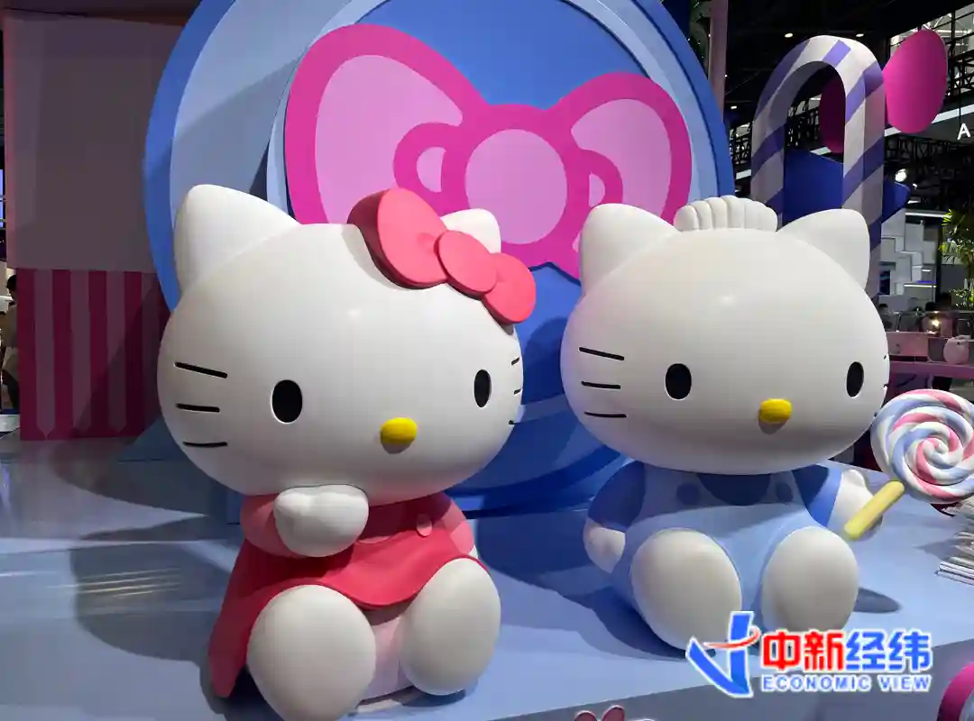 中新经纬在现场看到,展台上布展了很多拍照打卡区,不少参展观众都在驻足拍照,成了网红打卡点。除了拍照。展台还设有三丽鸥快闪店,各种“萌萌哒”商品亮相,供消费者选购。