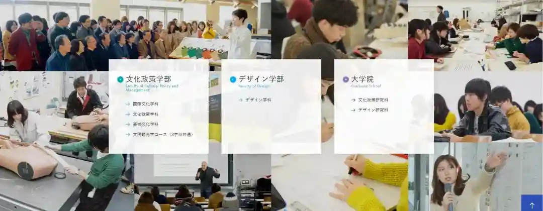 在艺术学部,加设了观光设计学科,这在全国也是绝无仅有的领域。2007年开设了涉及最新的媒体工学技术的媒体设计学科。此外,以绘画为基础的造形领域,陶艺工艺等领域也都进行了大幅充实。