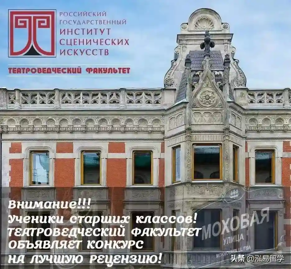俄罗斯国立舞台艺术学院(俄文:Российскийгосударственныйинститутсценическихискусств)原名:圣彼得堡国立戏剧学院,建于1878年,直属于俄罗斯教育部的国立高等艺术学院,每年有约1500名来自俄罗斯和不同国家的学生来此求学。