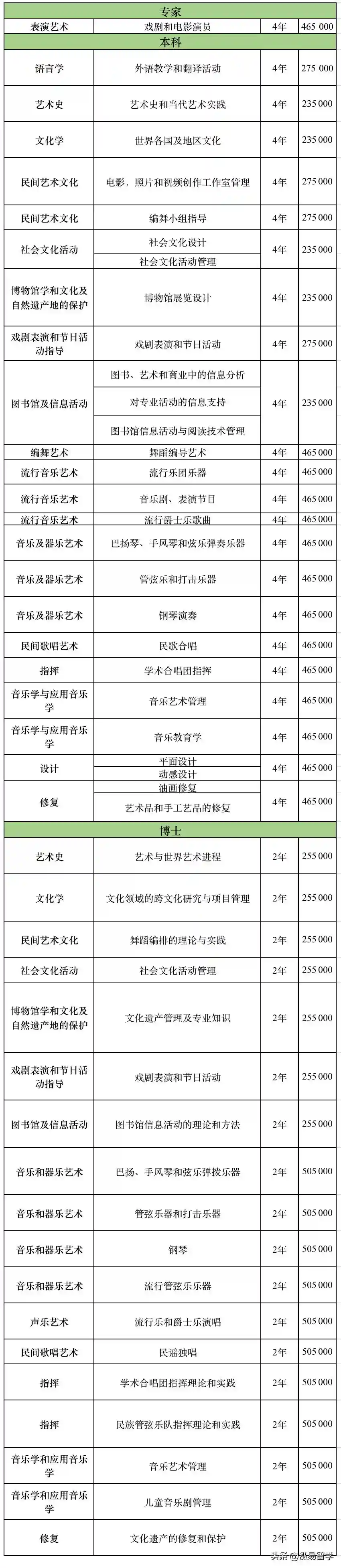 艺术学专业,音乐艺术方向400000卢布/年