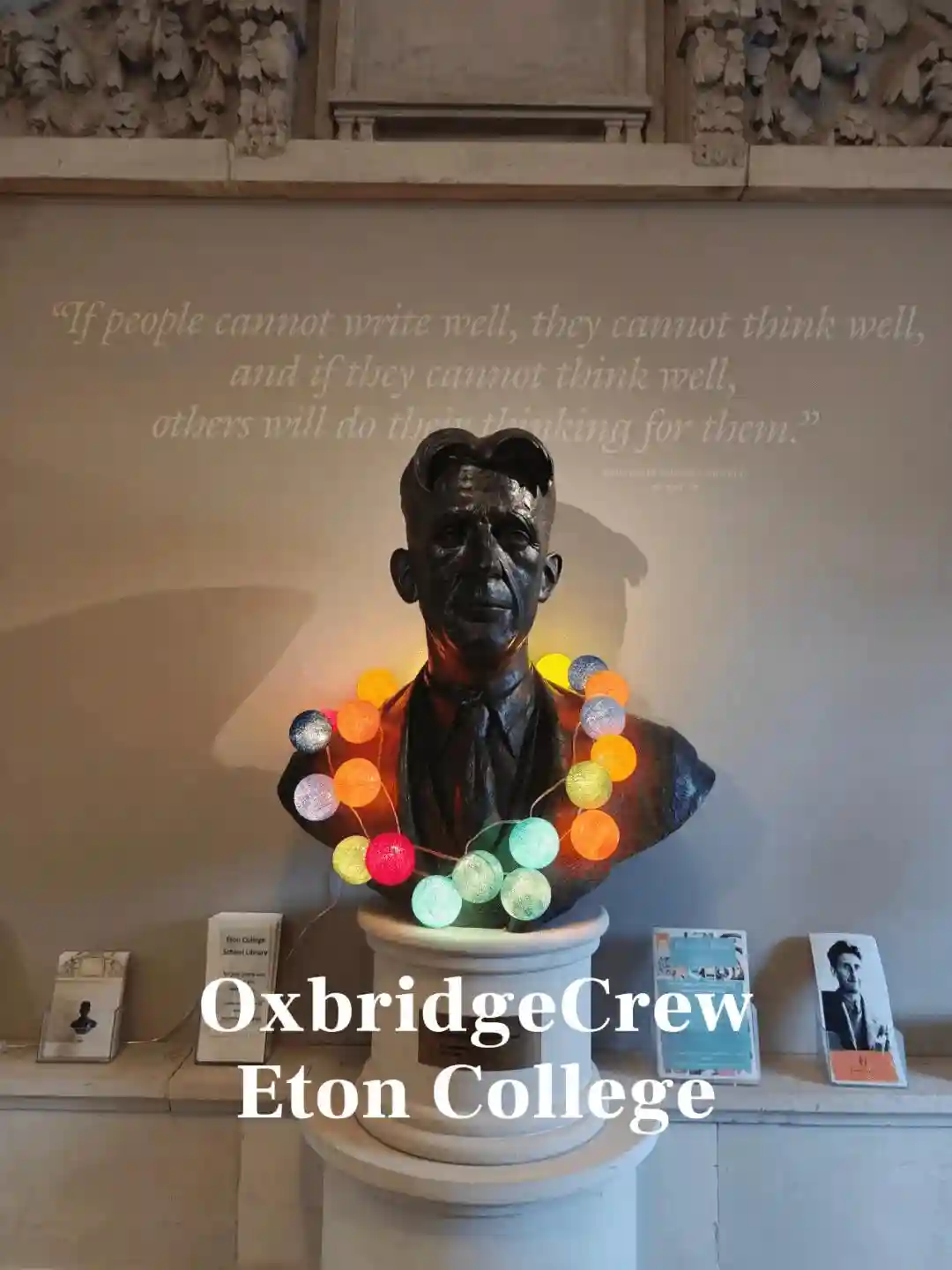 图书馆内还有乔治·奥威尔(GeorgeOrwell)的雕像,在伊顿期间,他与罗杰·迈诺斯(RogerMynors)一起制作了校园杂志《》,并参与了其他两部出版物的编辑。在后来的人生中,他写下了政治寓言体小说《动物庄园》(AnimalFarm)以及划时代巨作划时代巨作《1984》。