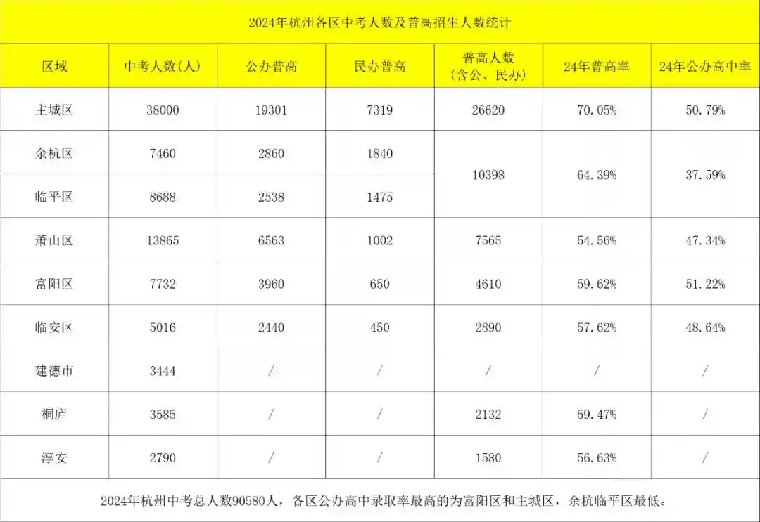 但是回顾一下刚刚结束的2024年中考,学生和家长感触还是很深。特别是作为余杭、临平两区的尤为明显。从数据来看,两区考生16148人,公办普高仅仅录取5398人,公办高中率仅仅37.59%。排在了杭州最后,上个普高真的是太卷了。