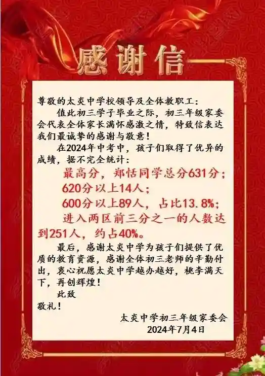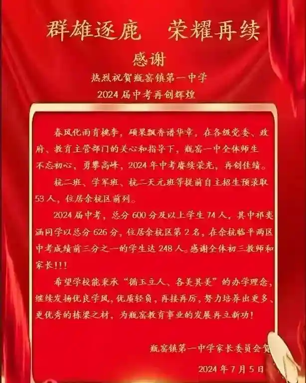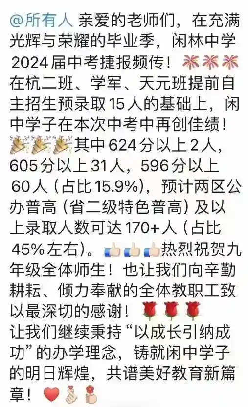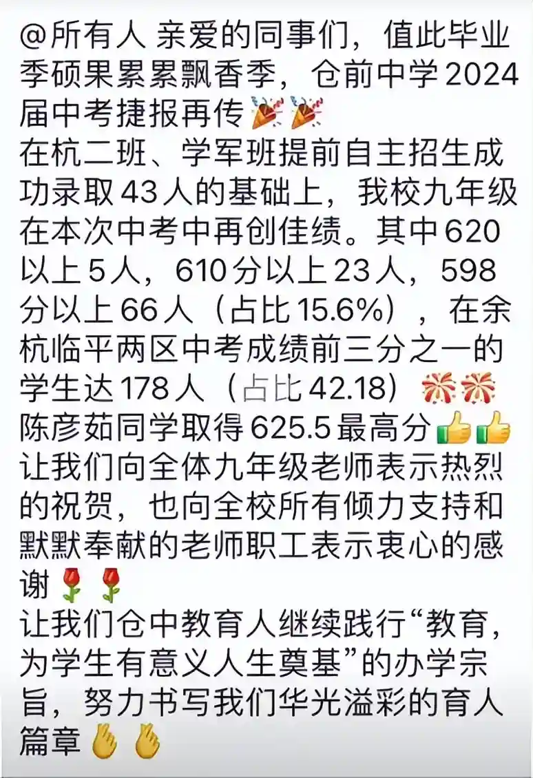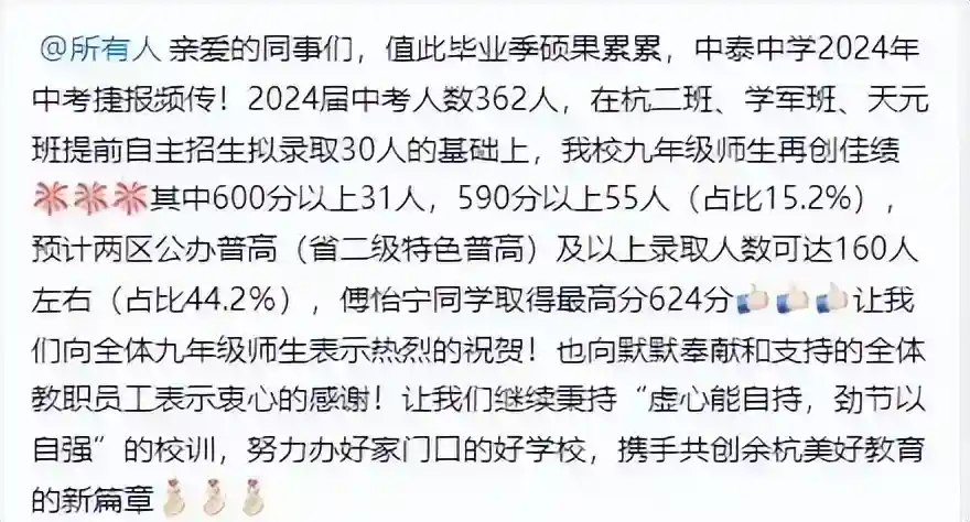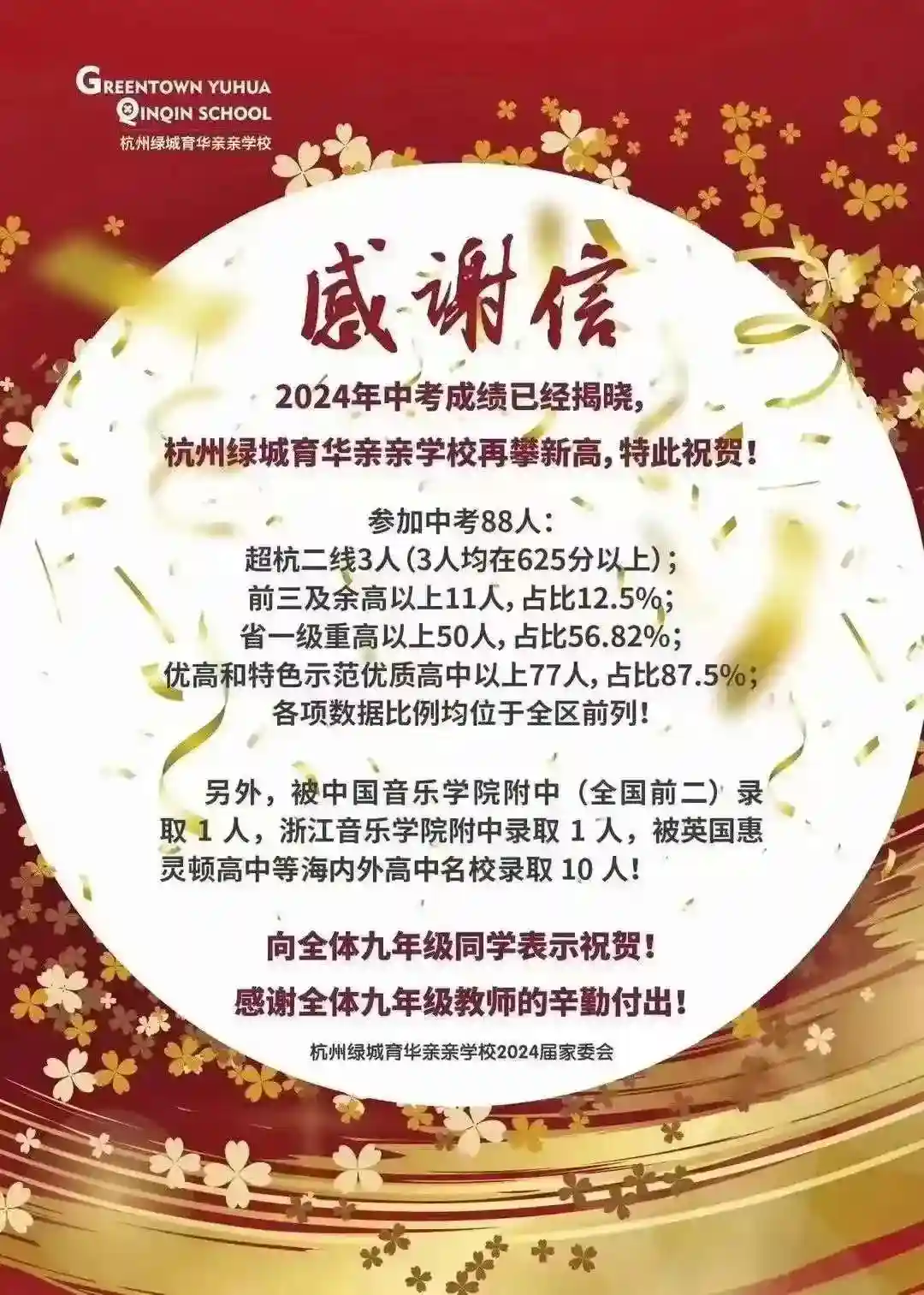 参加中考88人,超杭二线3人(3人均在625分以上);