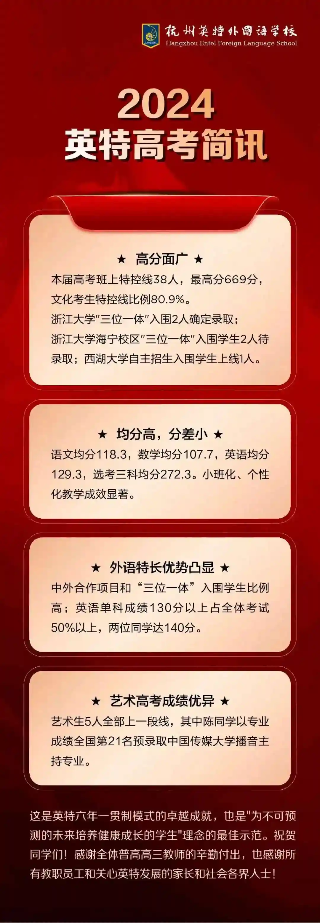 杭二班、学军班、杭二天元班等提前自主招生预录取53人,位居余杭区前列;