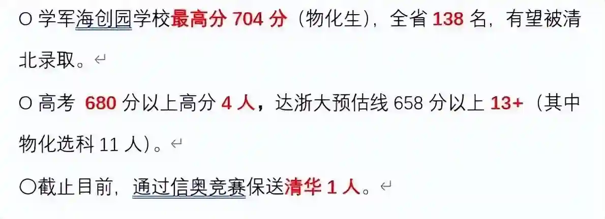 学军海创园学校最高分704分(物化生),全省138名,有望被清