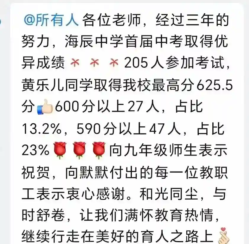 我校最高分625.5分;600分以上27人,占比13.2%;