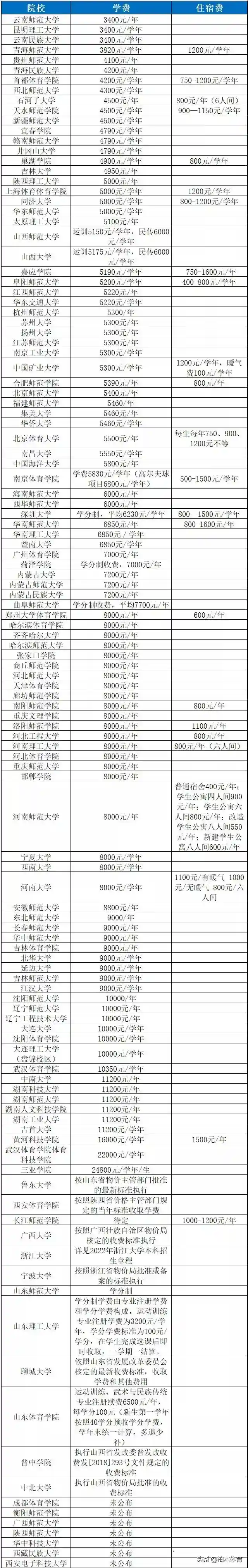 下图是柏木整理的2022年体育单招各院校的学费收费情况,以供各位考生报考参考。