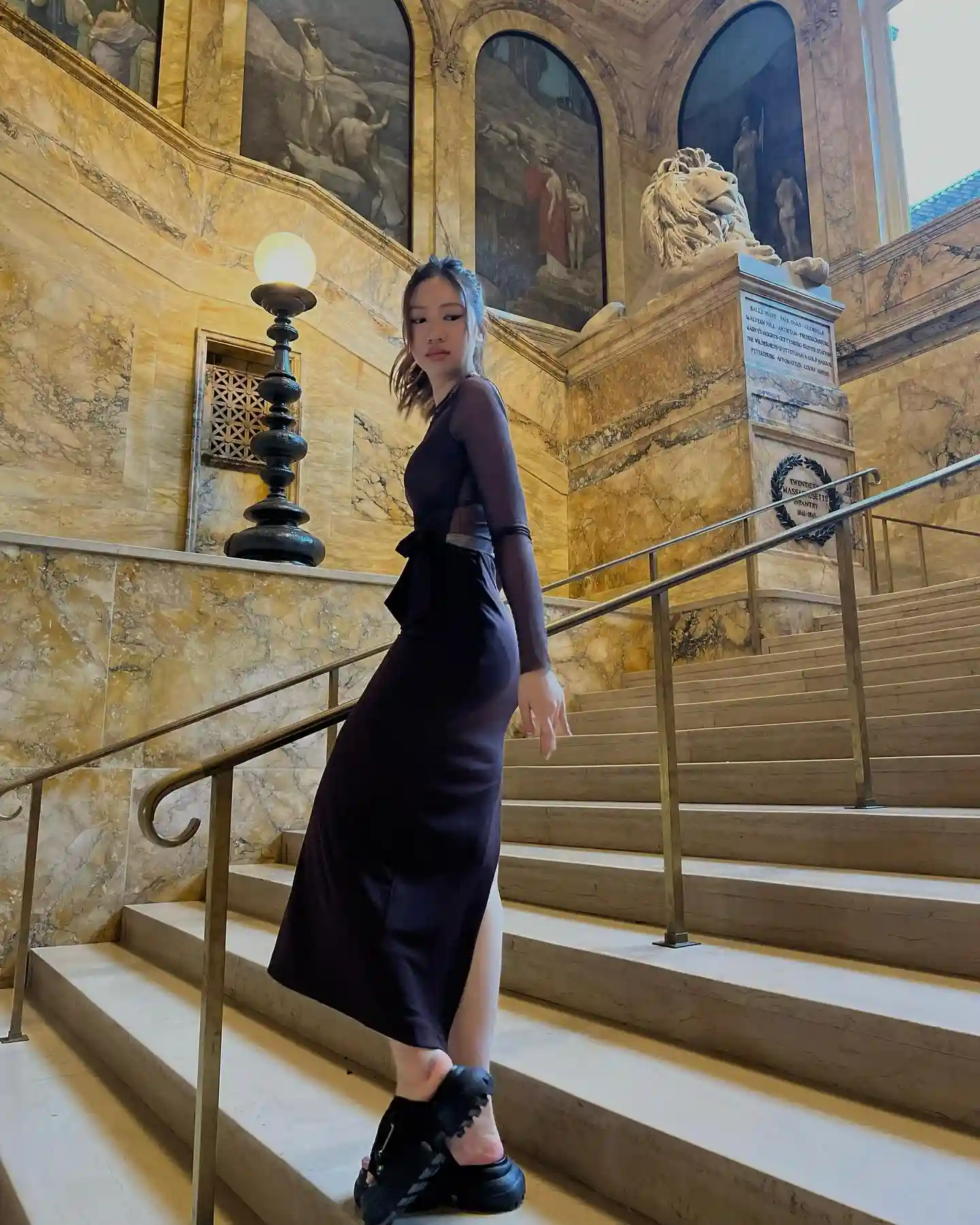事实上,她拍照的地点是著名的波士顿公共图书馆,该图书馆面向公众开放,每天都会吸引很多人来看书或参观。