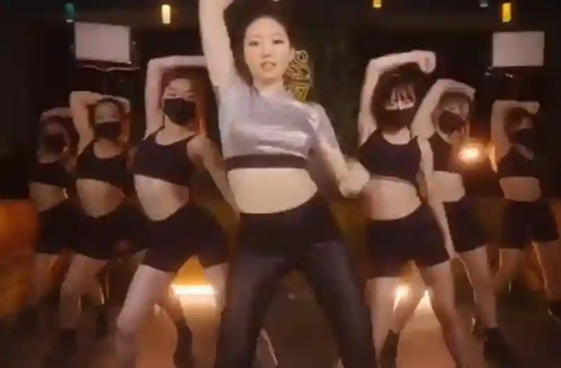 她连换2套衣服,在一群伴舞的陪伴下大跳流行舞蹈。她的动作灵活,节拍掌握得相当好,舞蹈观赏性很高。