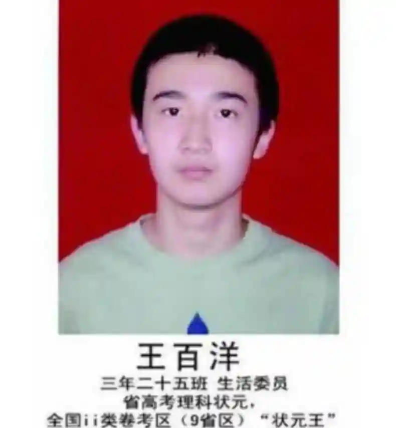 而王百洋的成绩,也是当时九个省中,分数最高的考生,拿下了“九省状元”的称号,在全国都引起了轰动,他也如愿的去到了,最喜欢的北京大学物理系读书。