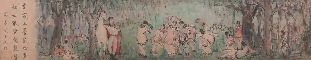 除此之外,上海美专的校长刘海粟,当初曾不拘一格将潘玉良收入学校,在其学成归国时,又不吝指出她的不足,帮助她更上一层楼。本次展出的《歌舞艳声》上,还可以看到潘玉良的恩师王济远为她做的题跋“霓裳三叠载歌舞,壮士散骑惊艳声”,贴切地描述了画作内容,也是用典故对潘玉良进行赞扬。