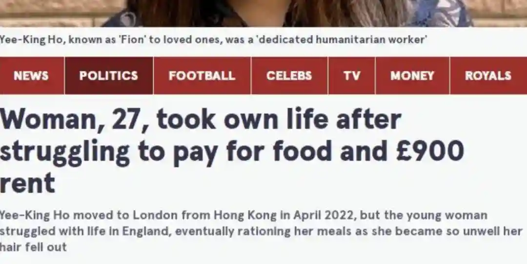 2023年,一名27岁港人女性何宜琼,移英半年后在租屋处自杀。