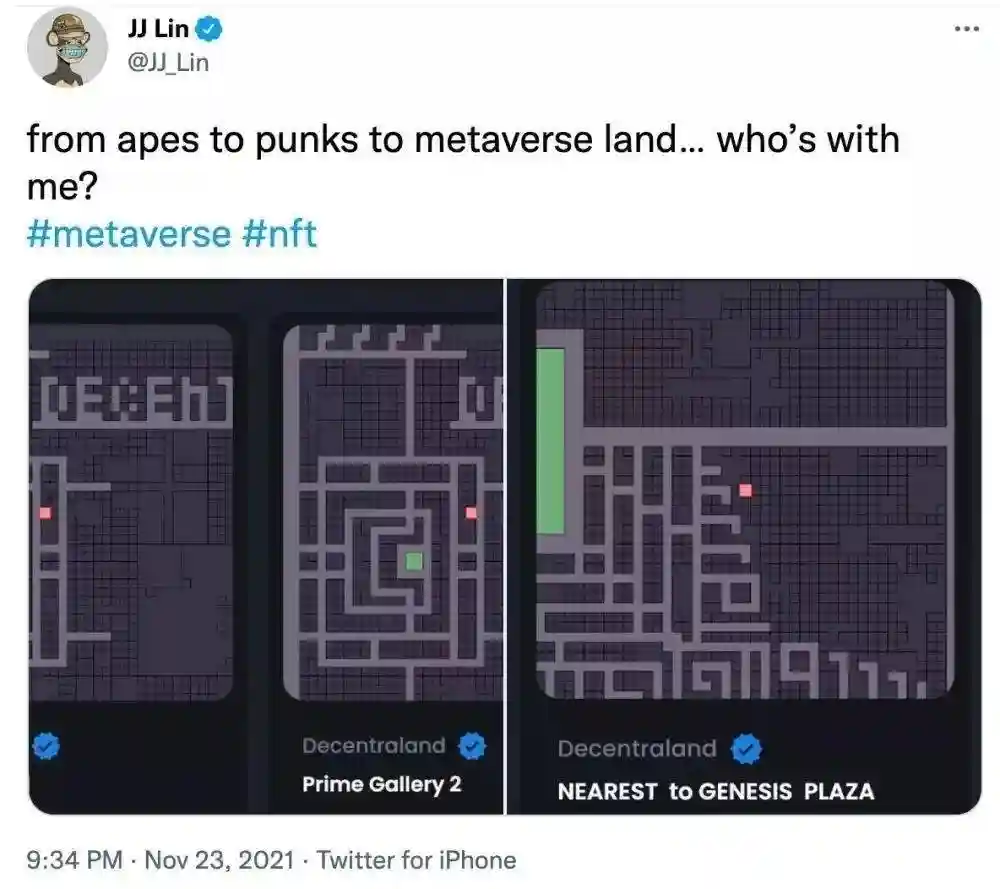 甚至,还有人直接炒起了元宇宙“房地产”项目,开始在虚拟世界售卖土地和房产……林俊杰就宣布,自己购买了Decentraland平台上的三块虚拟土地,正式涉足元宇宙世界。