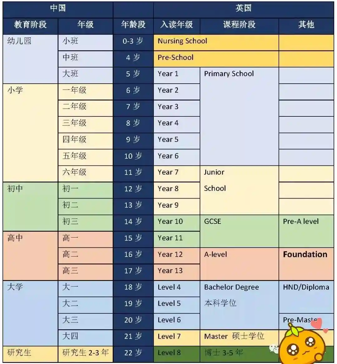 但英国的学制与中国是不一样的,如下图(以英格兰威尔士教育体系为例),我们可以看到中国高中前教育是12年,领先于英国的13年。而英国的高中为2年+大学3年+研究生1年,在最后实现22岁即可读博士,而中国则刚开始读研究生,在最终结果上相差2-3年。那么这种时间安排下,英国教育如何保证其含金量?