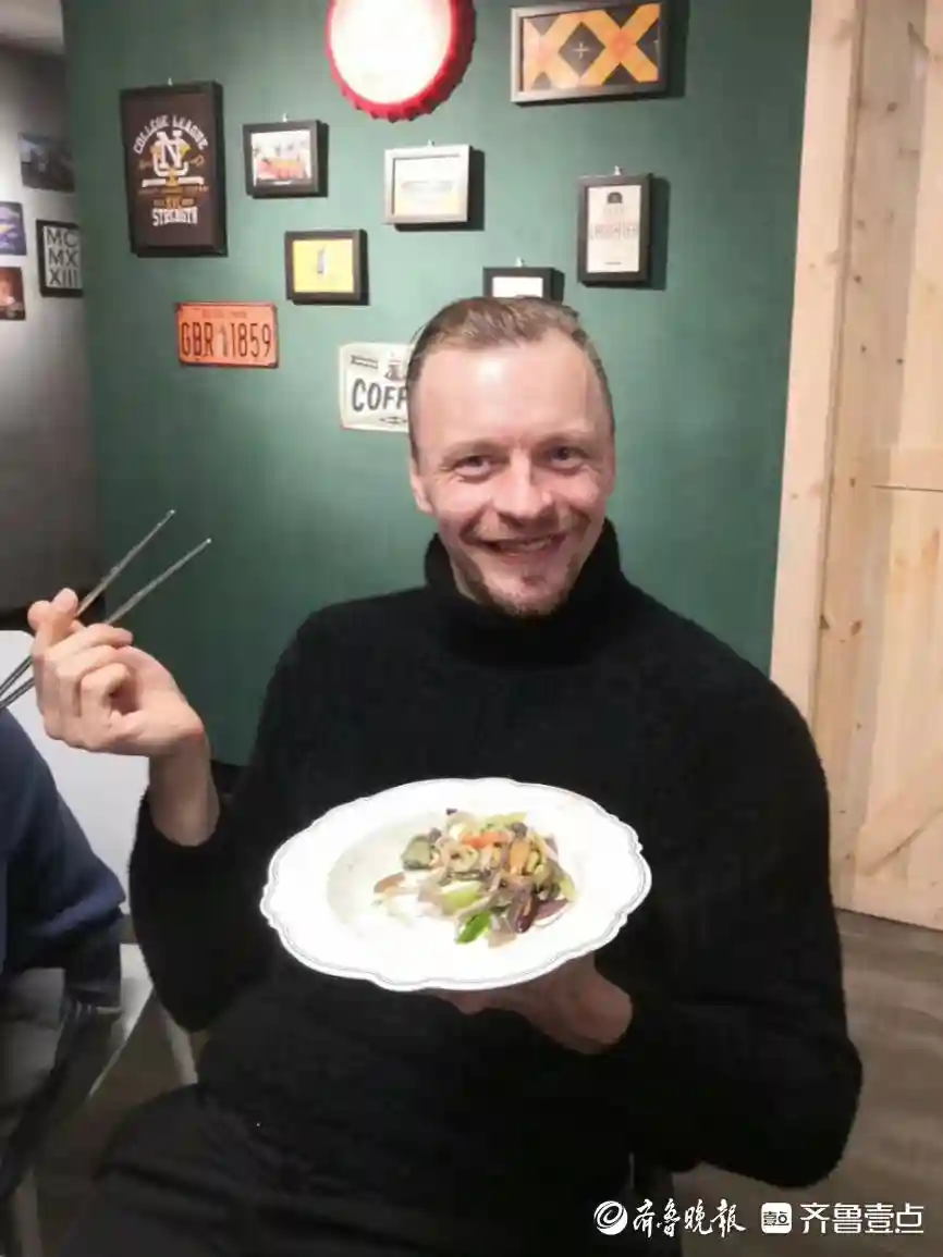 “烟台焖子,味道不错。”米沙介绍,他非常喜欢烟台的美食,焖子的做法感觉和他们的烤土豆有些相似。鸡蛋灌饼也很好吃,看到很多人买,他也会去排队。“烟台的汤也特别好喝,比如母鸡汤,与俄罗斯鸡汤的味道很相似,有些家乡的味道。”
