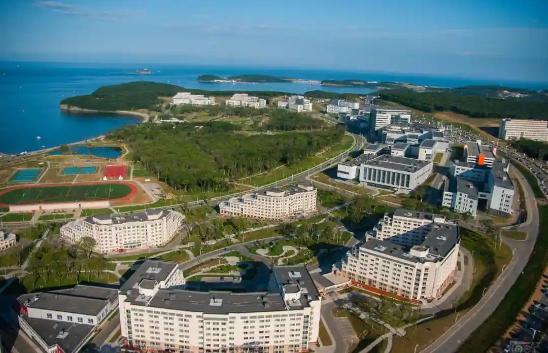 远东联邦大学位于俄罗斯远东地区滨海边疆区首府符拉迪沃斯托克(海参崴),占地面积80公顷,现有学生约2.3万人,包括来自74个国家的3200多名留学生。