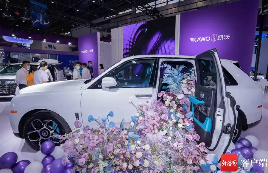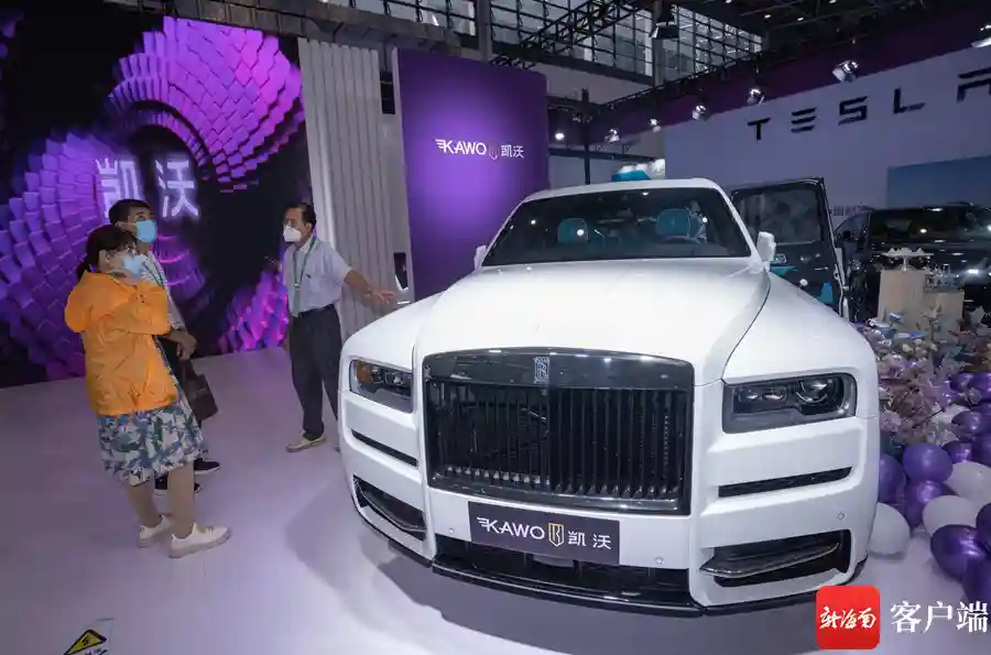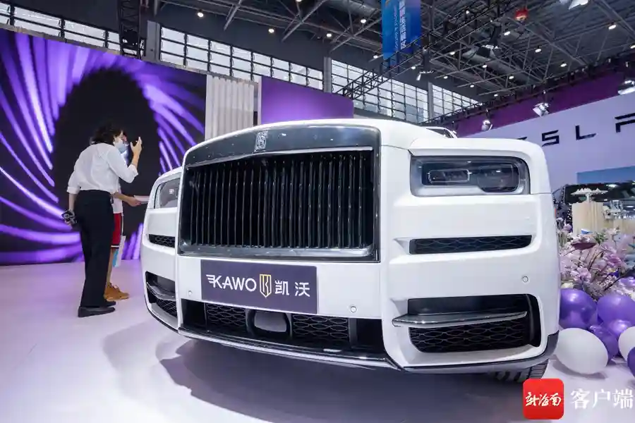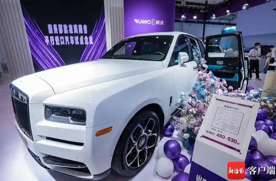 凯沃国际“零关税汽车”展馆亮相第二届消博会,图为劳斯莱斯库里南。记者李昊摄