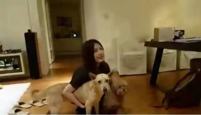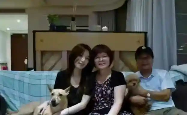田馥甄还养了两只狗狗,应该是因为拍狗狗弄脏,沙发上拍铺上了毯子,他们一家三口坐在一起的画面十分美好温馨。
