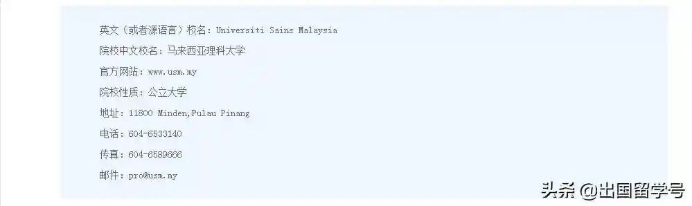 马来西亚理科大学(USM)是马来西亚第二古老的大学,也是马来西亚领先的大学之一。学校在高等教育发展中的主要重点是自然科学,应用科学,医学与健康科学,药学,建筑科学与技术,社会科学,人文与教育领域。